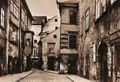 Photo of Josefov before it was demolished in late 1880's, which could be the inspiration for fictional town quarter Stínadla.