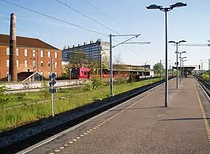 Ryparken station is an S-train station in Copenhagen, Denmark. It serves as an interchange station between the Ring line and Farum radial. It is serviced by the B, F, and H. The station was originally named Lyngbyvej Station it was renamed in 1972 to Ryparken Station.