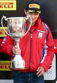 ![]() Kiyonari in Buildbase BMW colours acknowledging spectators' plaudits at Brands Hatch Showdown podium, end of BSB season 2014 | |||||||||||||||||||||||||||