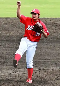 Ryuji Ichioka (一岡 竜司, Ichioka Ryuji, born January 11, 1991 in Itoshima, Fukuoka, Japan) is a former professional Japanese baseball player. He plays pitcher for the Hiroshima Toyo Carp.