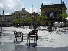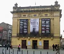 Two years later (23 November) a proposal was issued by the DRPorto, to reclassify the Theatre as a Portuguese National Monument.[1] Following a period of remodelling, the theatre began to function regularly, under the designation the Teatro Nacional de São João (São João National Theatre).[1] In addition to general cleaning, the work included the consolidation and restoration of the exterior facades, recuperation of the decorative sculptures, treatment of surfaces in pigmented mortar and the installation of new woods and iron.[1]