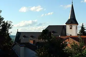 - The Catholic Parish Church has dominated the municipality's skyline since the 13th century. Its current appearance it got in a reconstruction after a fire in the 17th century. The Baroque comes from the 18th century. The Parish Church houses the Sörgenloch Madonna, a Late Gothic work.