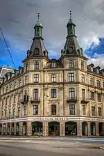Søtorvet stands as a gateway to the Inner City, coming from Nørrebro, but was not planned as such. Supposedly it aggravated Meldahl that a development of similar prominence was never built on the Nørrebro end of the bridge.[4] The development consists of four buildings, symmetrically arranged with the two buildings on one side of Frederiksborggade mirroring the two on the other side. Named Gothersgade and Venthersgade, a reference to the Goths and the Wends in the title King of the Goths and the Wends which was used by Danish kings from the 14th century until 1972,[5] the two streets separating the buildings on each their side of Frederiksborggade repeat the symmetry.