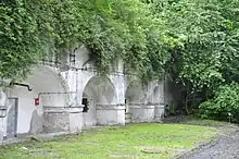 In 1886, the Fort VIIA "Służewiec" had been built in the village, as part of the series of fortifications of the Warsaw Fortress, built around Warsaw by the Imperial Russian Army. The objective of the fort had been the protection of road leading to town of Puławy, now being the Puławska Streen. In 1909, it was decided to decommission and demolish the fortifications of the Warsaw Fortress, due to the high maintenance costs. As such, Fort VIIA was partially demolished in 1913.[45] The building is currently located within the modern boundaries of the area of Służew.[1]