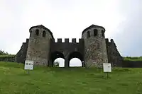 After conquering Dacia, the Romans built on the place of a Dacian settlement the capital of Dacia Porolissensis, at Porolissum (current Moigrad). The capital Porolissum had about 20,000 inhabitants, defended by the militaries in the local castra.[7] As a work of art should be mentioned the amphitheater, a scale replica of the one in Rome, with a capacity of 6,000 seats. In 214 AD, Roman Emperor Marcus Aurelius Antoninus visited Porolissum. At Porolissum was quartered for a period Cohors III Dacorum, made of ethnic Dacians, who fought as infantry.