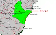 S'illot is a small tourist town on the south east coast of the Balearic Island of Mallorca, Spain, divided between the council areas of Manacor and Sant Llorenç des Cardassar. The two districts are separated by the river Torrent de Ca n'Amer[2] which is spanned by a large bridge in the town. A range of seaside leisure activities take place in the town. At the entrance to the town there is prehistoric settlement that is well preserved.[3]