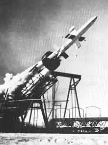 At roughly the same time, the US Navy began to face the first mass kamikaze attacks. In this case, the attacking aircraft had to collide with its target, so performance and accuracy requirements were reduced. However, the desire to rapidly fill the gap between the short and long-range protection was even more vital. Bumblebee's efforts were aimed at high-performance, supersonic weapons, and as much of the technology was brand new, they could not be expected to enter service in the short term. A new project emerged to introduce a lower-performance weapon as rapidly as possible.[2]