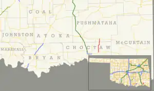 - 1 2 3 Oklahoma Department of Transportation (n.d.). Control Section Maps: Choctaw County (PDF) (Map) (2010–2011 ed.). Scale not given. Oklahoma City: Oklahoma Department of Transportation. Retrieved November 12, 2012.