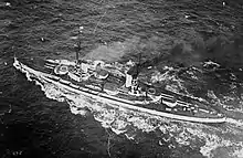 On 18 August 1916, Friedrich der Grosse took part in an operation to bombard Sunderland.[14] Admiral Scheer attempted a repeat of the original 31 May plan: the two serviceable German battlecruisers, Moltke and Von der Tann, augmented by three faster dreadnoughts, were to bombard the coastal town of Sunderland in an attempt to draw out and destroy Beatty's battlecruisers. Scheer, in Friedrich der Grosse, would trail behind with the rest of the fleet and provide support.[40] During the action of 19 August 1916, Scheer turned north after receiving a false report from a zeppelin about a British unit in the area.[14] As a result, the bombardment was not carried out, and by 14:35, Scheer had been warned of the Grand Fleet's approach and so turned his forces around and retreated to German ports.[41]