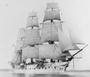 SMS Gneisenau was a Bismarck-class corvette built for the German Imperial Navy (Kaiserliche Marine) in the late 1870s. The ship was named after the Prussian Field Marshal August von Gneisenau. She was the fifth member of the class, which included five other vessels. The Bismarck-class corvettes were ordered as part of a major naval construction program in the early 1870s, and she was designed to serve as a fleet scout and on extended tours in Germany's colonial empire. Gneisenau was laid down in June 1877, launched in September 1879, and was commissioned into the fleet in October 1880. She was armed with a battery of fourteen 15 cm (5.9 in) guns and had a full ship rig to supplement her steam engine on long cruises abroad.