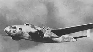 SNCAC continued work on high-altitude aircraft, proposing two pressurised bombers in 1938. The first, the NC.140, was a four-engined bomber using the wings of the Farman F.223.3 but was quickly abandoned in favour of the smaller, twin-engined NC.150.[2][3] The NC.150 was a mid-winged monoplane with a retractable tailwheel undercarriage which was designed to make maximum use of non-strategic materials such as wood. The wings were of mixed construction, with a metal centre-section, and wood outer wings that had metal spars, wooden ribs and plywood skinning. Similarly, the fuselage had wooden forward and aft fuselage section connecting to the metal centre section, while the twin tail was of wooden construction with plywood skinning. It was to be powered by two Hispano-Suiza 12Y V12 engines, with power being maintained at high altitudes by using a single three-stage supercharger driven by a separate Hispano-Suiza 12X engine mounted in the fuselage.[4]