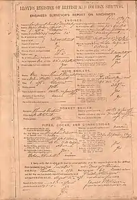 The steamer Bandırma, built 1878 in Paisley, Scotland, was a 47.7-metre (156 ft) cargo ship with 192 gross register tons capacity. It was christened Trocadero, and under this name, it sailed five years long as a freighter for Dansey and Robinson.[1] In 1883, it was purchased by Greek ship-owner H. Psicha Preaus, and renamed SS Kymi. 7 years later, it was sold to another Greek ship-owner, Cap. Andreadis, sailing under the same name. In 1891, it went down following an accident but could be floated again.