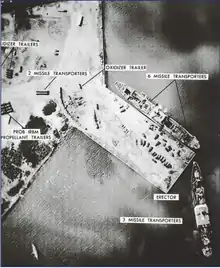 - ↑ Newspaper "Utica Observer-Dispatch", Sunday Morning, November, 11, 1962. Page 2a. Article: "41 of 42 Cuba Missiles Believed Russia-Bound V".