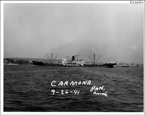 SS Carmona (Master Charles Beke) was en route from Buenos Aires to the US with a cargo of 7,138 tons of linseed in bulk. The ship was sailing alone and unarmed. At 11:27 local time on July 18, 1942, in position 10°58′N 61°20′W / 10.967°N 61.333°W / 10.967; -61.333, southeast of Trinidad, German submarine U-160 under command of Georg Lassen launched four torpedoes and hit Carmona on the starboard side. The first torpedo struck the engine room, and killed four crew members. The second hit at #2 hatch about 10 minutes later, and the other two struck shortly after. The ship turned on her side and sunk at 12:00 noon. The Master ordered to abandon ship and the survivors were picked up by a United States Navy Patrol Boat USS YPC-68 and taken to Port of Spain. There were 31 survivors.[95]