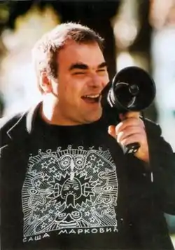 Saša Marković – Mikrob (Serbian Cyrillic: Саша Марковић – Микроб, pronounced [saʃa markɔʋitɕ mikrɔb]; 21 October 1959, Belgrade, SFRY – 15 July 2010, Belgrade, Serbia), also known as Mladoženja, Bambus and Ganeša[1] was a Serbian artist, journalist, radio host, social worker, performer,[2] and one of the major representatives of the Serbian alternative and contemporary art scene.[3][4] He worked as a contributor for several newspapers and radio programs, and as a performer he played about fifty times in Serbia and abroad.[2] As a specific character, Marković was an inspiration for a number of documentaries, and often appeared in music videos of Belgrade bands.[2]