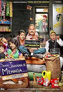 Saare Jahaan Se Mehnga (transl. More expensive here than elsewhere) is a 2013 Bollywood satire film directed by Anshul Sharma starring Sanjay Mishra and Pragati Pandey. Written by Roopesh Thapliyal and Vijay Manral, Lyrics by Naveen Tyagi the film also has Ranjan Chhabra, Disha, Vishwa Mohan Badola, Pramod Pathak, Zakir Hussain and Sitaram Panchal.[2] Saare Jahaan Se Mehnga..., produced by Ashok Pandey under the banner of Revel Films, is a satire on the rising prices in the country.[3]