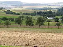The Saargau is a ridge west of the River Saar. It begins in the south near Berus, runs northwards along the French border, from the Saarland over to the neighbouring state of Rhineland-Palatinate. The northern part is bounded in the west by the Moselle and ends near Konz, where the Saar empties into the Moselle.