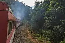 A train passing the Pengalat Railway Tunnel between Kawang and Papar. View from Kawang side.