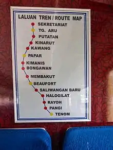 - ↑ "Stesen-Stesen Keretapi" [Railway stations] (in Malay). Sabah State Railway. Archived from the original on 5 August 2019. Retrieved 5 August 2019.