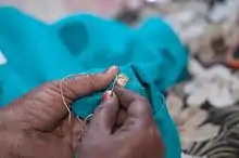 The social enterprise, Sabala Handicrafts was created to provide economic opportunities to the Lambanies (Banjaras) and all other marginalized women. Sabala Handicrafts is organized as a linked enterprise and is run through their craft center.[2] The women become artisans through training in the art of embroidery, weaving and or sewing. Although the Craft Center is the head of the operations, much of the work is done villages of the locals as the Sabala Handicraft team transports materials and finish goods throughout the area. This allows the artisans to tend to their households and children while maintaining employment.[3]