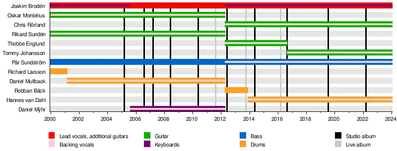 - Joakim Brodén – lead vocals, additional guitar (1999–present), keyboards (1999–2005, 2012–present)