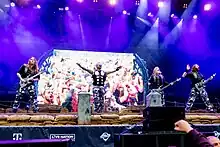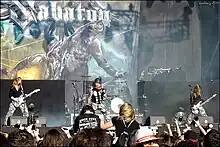 Sabaton is a Swedish power metal band from Falun. The vast majority of their albums are written about historical events, mainly wars and significant battles. Sabaton has been referred to as one of the "big four" power metal bands, along with Helloween, Blind Guardian, and DragonForce.[1]