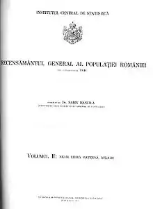 Manuilă soon began work on a new census, "a giant, extremely complex operation"[72] which was intended to give added weight to Romania's claims on her neighbors.[73] According to historian Victor Neumann, this enterprise was also notable for the "ideologized criteria and notions" which it vented in its published form.[74] A special section of the 1941 census involved the cataloging of all Jewish property, a summary of which was sent to the German Main Security Office.[75] Manuilă also advised government to add the criminal status of Romani individuals in its census data, including sentences for being "work-shy".[76]