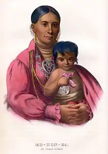 Sacred Sun (Mohongo) (1809–1836) was an Osage woman who lived on Osage land in what is now Missouri, US.[1] She took a journey all throughout Europe, and tales of her trip were recorded in French and American newspapers and pamphlets of that age. After returning to the United States, her portrait was painted and hung up for display in Washington D.C. to show off her skills and determination.