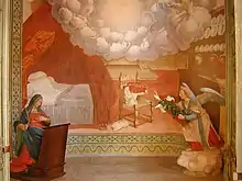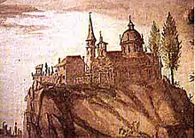 ![]() The Sanctuary atop its crag, as depicted in a fresco in Capella XIV. | |