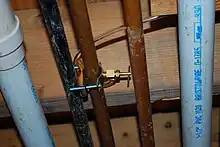 A saddle valve is a valve used to supply liquid where a low volume, low pressure stream is required. The name is derived from the fact that it is mounted in such a way that it "saddles" the line, mounting it from both sides.