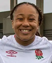 In September 2021, Kabeya was named in the England squad for the COVID-delayed 2021 Rugby World Cup[7] and started in the opening game against Fiji,[8] where she was named Player of the Match.[9]