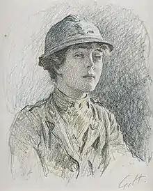 Sara "Sadie" Bonnell was born in Kew, Surrey, on 4 June 1888. She was educated at Bedales, a co-educational school. After leaving school she lived at home. During the First World War, she wanted to become an ambulance driver but was not allowed to do so by the authorities since she was a woman. Instead, she drove ambulances in London for the Canadian Army Service Corps. She later joined the First Aid Nursing Yeomanry (FANY) in December 1917, and was sent to Unit 8, a joint FANY/VAD ambulance convoy attached to the British 2nd Army, based at St Omer. The FANYs had been founded in 1907 as an all-women mounted volunteer corps. By the outbreak of war in 1914, they had shifted into motorised ambulance work, also working for the Belgian and French Armies.[4] Bonnell showed great courage during the East End Air Raid. She was driving an ambulance in 1916 during some of the first air raids London experienced.
