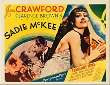 Sadie McKee is a 1934 American pre-Code, romantic-drama film directed by Clarence Brown, starring Joan Crawford, and featuring Gene Raymond, Franchot Tone, Edward Arnold, and Esther Ralston. The film is based on the 1933 short story "Pretty Sadie McKee", by Viña Delmar.[2] Crawford plays the title character, from young working girl through poverty, a marriage into enormous wealth and finally a (seemingly) settled life on her own terms.