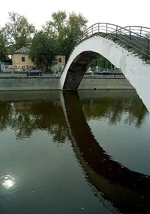 Sadovnichesky Bridge (Russian: Cадовнический мост) is a cоncrete pedestrian arch bridge that spans Vodootvodny Canal in historical Zamoskvorechye district of Moscow, Russia. The bridge connects Balchug island with Zamoskvorechye mainland. It was built in 1963, designed by Nina Bragina (structural engineering), V.A. Korchagin and K.P. Savelyev (architectural design). It is Moscow's nearest adaptation of a Moon bridge.