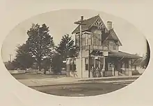 The original station was built by the Old Colony Railroad in 1886.[1] The New York, New Haven & Hartford Railroad built a new brick station building in Sagamore in 1909 based on an architectural design that was similar to the Buzzards Bay and West Barnstable stations, both of which stand to this day.[2] All that remains of the former Sagamore station is its foundation.