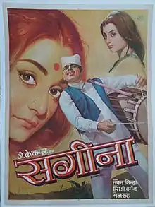 Sagina is a 1974 Hindi film, produced by J. K. Kapur and directed by Tapan Sinha, the film stars Dilip Kumar, Saira Banu, Aparna Sen, Om Prakash. It was a remake of 1970 Bengali movie Sagina Mahato directed by Tapan Sinha with the same lead pair in the cast.[1] This version was a commercial failure, and Dilip Kumar's first consecutive failure in almost three decades since 1945. His last film Dastaan (1972) was also a commercial failure.[2][3]