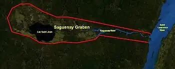 The Saguenay Graben is a rift valley or graben in the geological Grenville Province of southern Quebec, Canada. It is an elongated flat-bottomed basin 250 km (155 mi) long and 50 km (31 mi) wide, bounded by normal faults running parallel to its length.[1]