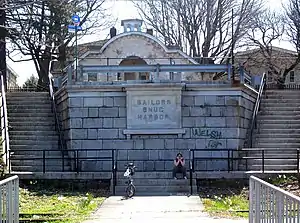 The Sailors' Snug Harbor station is a former station on the abandoned North Shore Branch of the Staten Island Railway.[1] It had two tracks and two side platforms. Located in the Livingston section of Staten Island north of Richmond Terrace, the station was approximately 1.2 miles (1.9 km) from Saint George Terminal.[2] It is at the northernmost end of the Snug Harbor Cultural Center and Botanical Garden.[3]