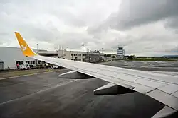 Saint-Étienne–Bouthéon Airport or Aéroport de Saint-Étienne–Bouthéon (IATA: EBU, ICAO: LFMH) is an international airport serving the French city of Saint-Étienne. It is located in Andrézieux-Bouthéon, 12 km north-northwest of Saint-Étienne,[1] within the département of Loire in the Rhône-Alpes région and mainly used by low-cost airlines.