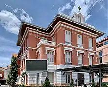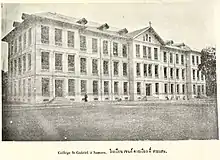 Construction began in 1920, the chief engineer being Mr. Be'quelin. The main building was designed entirely by Brother Martin de Tours. The building, which cost approximately 100,000 Thai baht, was completed in February 1922. Due to the building being painted light red, it has since been referred to as "tuk-daeng" (Thai: ตึกแดง) ('the red building').