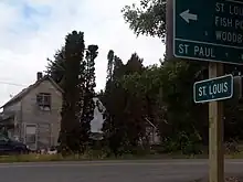 One of the oldest communities in the state, Saint Louis was founded in 1845 when a Jesuit missionary, Reverend Aloysius Verecuysee, built a log church there for the early settlers.[2][3] Saint Louis parish was organized in 1847 with a resident priest and named for St. Louis, King of France.[2] It was the third parish organized in what is now the Archdiocese of Portland.[4] The Saint Louis Catholic Church, built in 1880 on the site of the original Saint Louis cemetery, is still in operation.[5][6] It is the oldest wooden church in the archdiocese.[4] The current Saint Louis cemetery is northwest of the church.[7] Saint Louis post office operated from 1860 until 1901; today Saint Louis has a Gervais mailing address.[2] At one time the community had a school and store.[3]