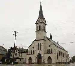 The church, a Gothic Revival building built in 1891, is still (1992) used for religious services. The rectory is a Queen Anne style building built in 1895 with modifications in 1926 and 1946. It, too, is still used for its original purpose as the residence of the parish priest. The convent, also a Queen Anne style residence, was built in 1903 with modifications in 1916 and 1931, is now leased to the Two Rivers Historical Society. The school, a three-story building in a style influenced by the Classical Revival, was built in 1909 with modifications in 1921, 1931, and 1958. As of 1992 it was being converted into an apartment complex.[2]