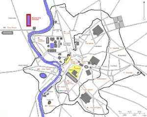 Naumachia Vaticana on a map of ancient Rome around 300 AD