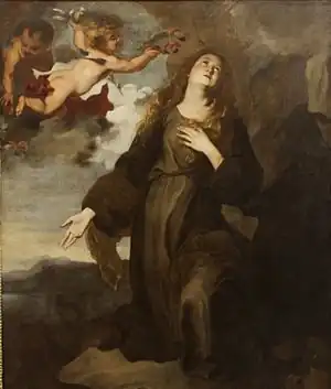 Saint Rosalia Crowned by Angels is an oil on canvas painting by the studio of Anthony van Dyck, created c. 1624, one of several works showing the saint produced whilst van Dyck was quarantined in Palermo, Sicily due to a plague.[1] It is now in the Galleria Regionale del Palazzo Abatellis in Palermo, where in 2015 it was displayed alongside Saint Rosalie Interceding, loaned from the Metropolitan Museum of Art.[2]
