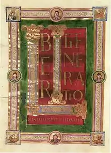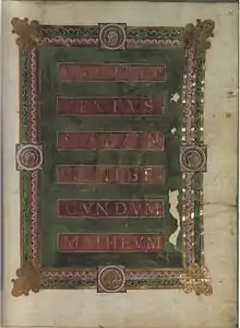 Title page of Saint Matthew's Gospel, recto of folio 16.