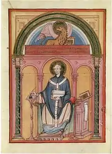 The Sainte-Chapelle Gospels or the Sainte-Chapelle Gospel Book is an Ottonian illuminated manuscript now housed in the Bibliothèque nationale de France in Paris as Latin 8851. It is made up of 156 parchment folios, in a 38.5 cm by 28 cm format, making it one of the largest manuscripts of its era. It includes miniatures such as the canon tables, Christ in majesty and the Four Evangelists. It is the work of the Master of the Registrum Gregorii, the most famous illuminator of the Ottonian Renaissance.
