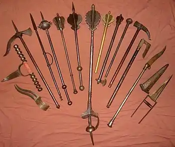 The saintie is an Indo-Persian parrying spear. It is a staff weapon that can be used both for offensive and defensive purposes. They have been produced since the 16th century and were used up to the 19th century. The use of saintie is extremely scarce today.[1]