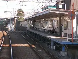 The station has two parallel side platforms, which are offset from each other, with a level crossing connecting the two platforms. The station entrance is located in between the platforms towards the south. and has automated ticket machines, and automated turnstiles, which accept the LuLuCa smart card ticketing system as well as the PiTaPa and ICOCA IC cards. The station is wheelchair accessible only in the Shin-Shizuoka direction, as access to the other platform is only via stairs.