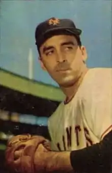 Salvatore Anthony Maglie (April 26, 1917 – December 28, 1992) was an American Major League Baseball pitcher and later, a scout and a pitching coach. He played from 1945 to 1958 for the New York Giants, Cleveland Indians, Brooklyn Dodgers, New York Yankees, and St. Louis Cardinals. Maglie was known as "Sal the Barber", because he gave close shaves—that is, pitched inside to hitters. A gentle personality off the field went unnoticed during games, his foreboding physical appearance contributing to his menacing presence on a pitcher's mound. He was the last of 14 players to play for the Giants, Dodgers and Yankees at a time when all three teams were in New York City. During a 10-year major league baseball career, Maglie compiled 119 wins, 862 strikeouts, and a 3.15 earned run average.[1]