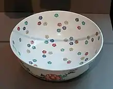 Salad bowls may be made of any of the usual materials used for tableware, including ceramics, metal, plastic, glass, or wood. Salad bowls can also be made from renewable materials such as Poly-lactic Acid (PLA), wheat straw fiber and sugarcane bagasse.[1]